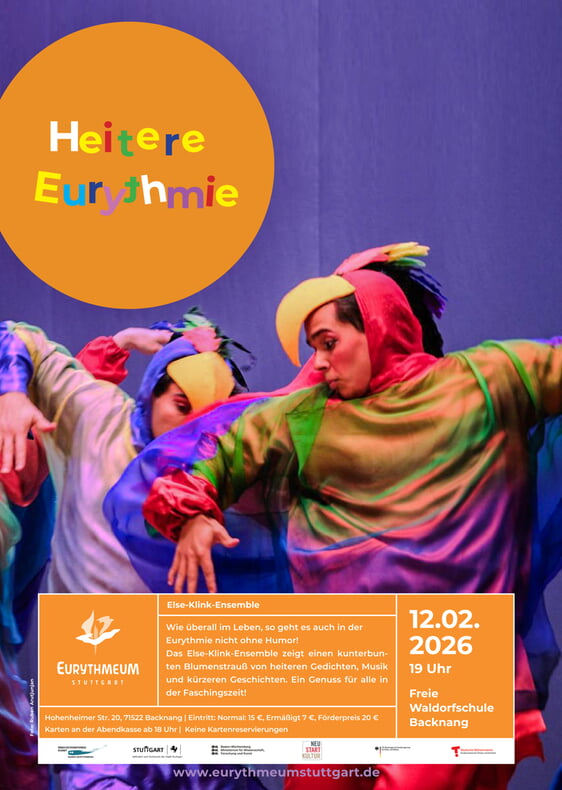 Wie überall im Leben, so geht es auch in der Eurythmie nicht ohne Humor! Das Else-Klink-Ensemble zeigt einen kunterbunten Blumenstrauß von heiteren Gedichten, Musiken und kürzeren Geschichten. Ein Genuss für alle in der Faschingszeit!