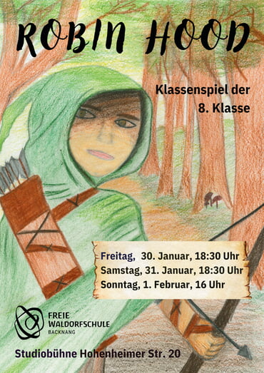 Die 8. Klasse führt ihr Klassenspiel „Robin Hood“ auf und lädt herzlich zu den Aufführungen ein.